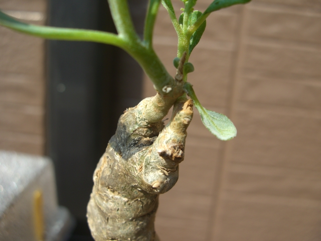 おなじみキョウチクトウ科のパキポです。しかし、あまり市場には出回らないようで、私も今回始めてお目にかかり購入しました。大事にせねば。実生株でイモ径5cmです。夏型。