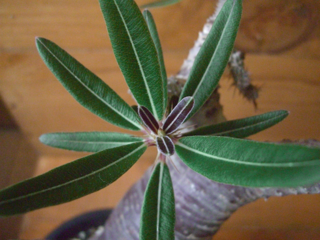 成長点の様子。古い葉の中から新しい葉が出てきてます。