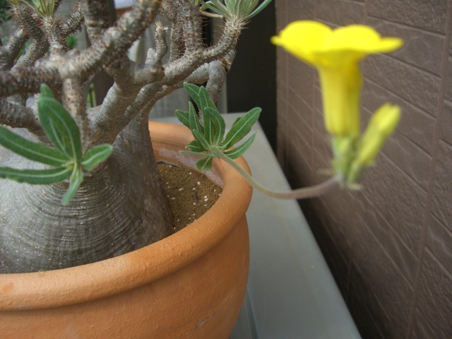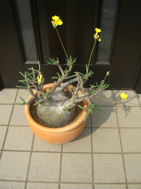 パキポらしい、黄色の花を咲かせています。この樹形と花の調和がなんとも癒されます。