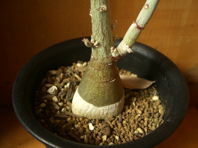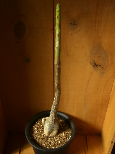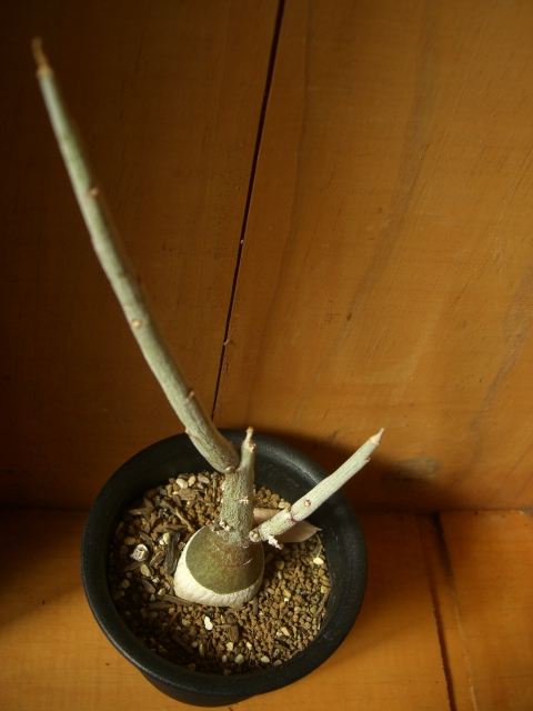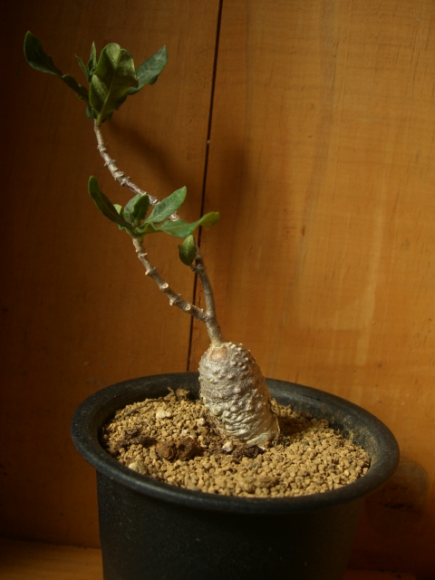 おなじみキョウチクトウ科のパキポです。しかし、あまり市場には出回らないようで、私も今回始めてお目にかかり購入しました。大事にせねば。実生株でイモ径5cmです。夏型。