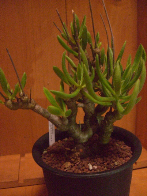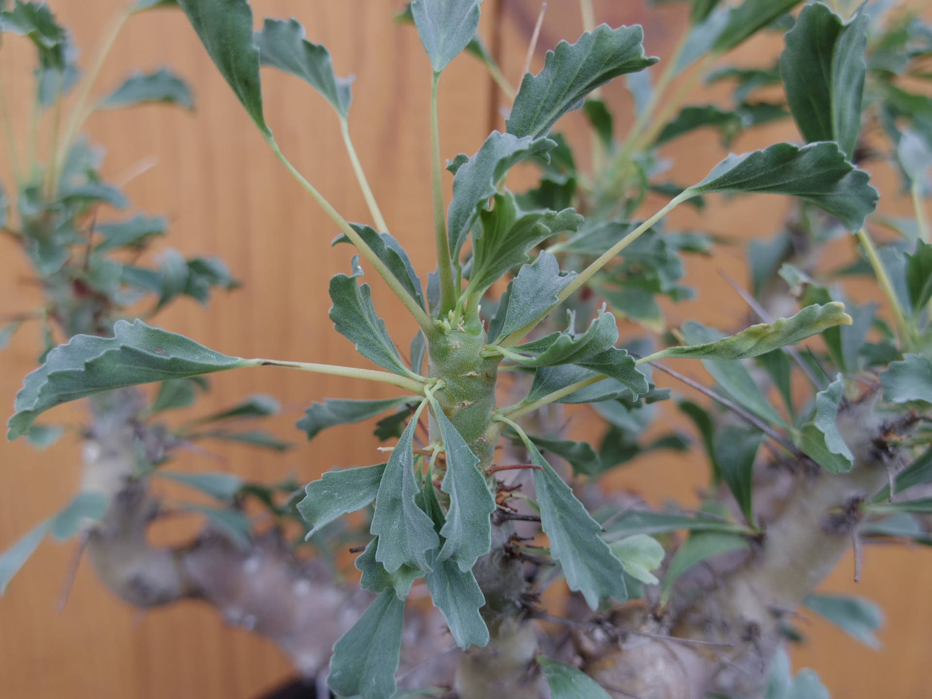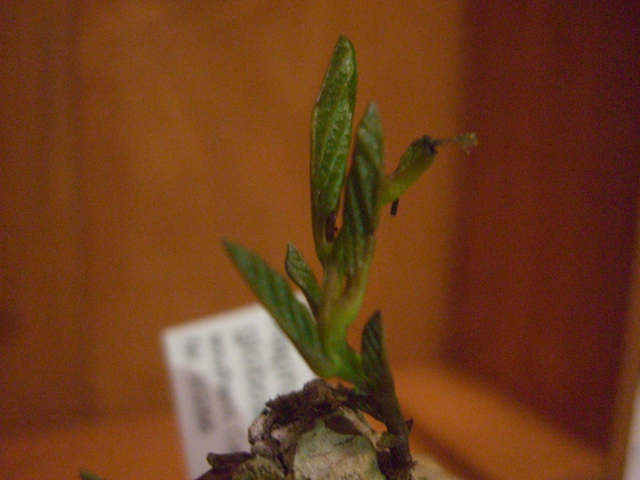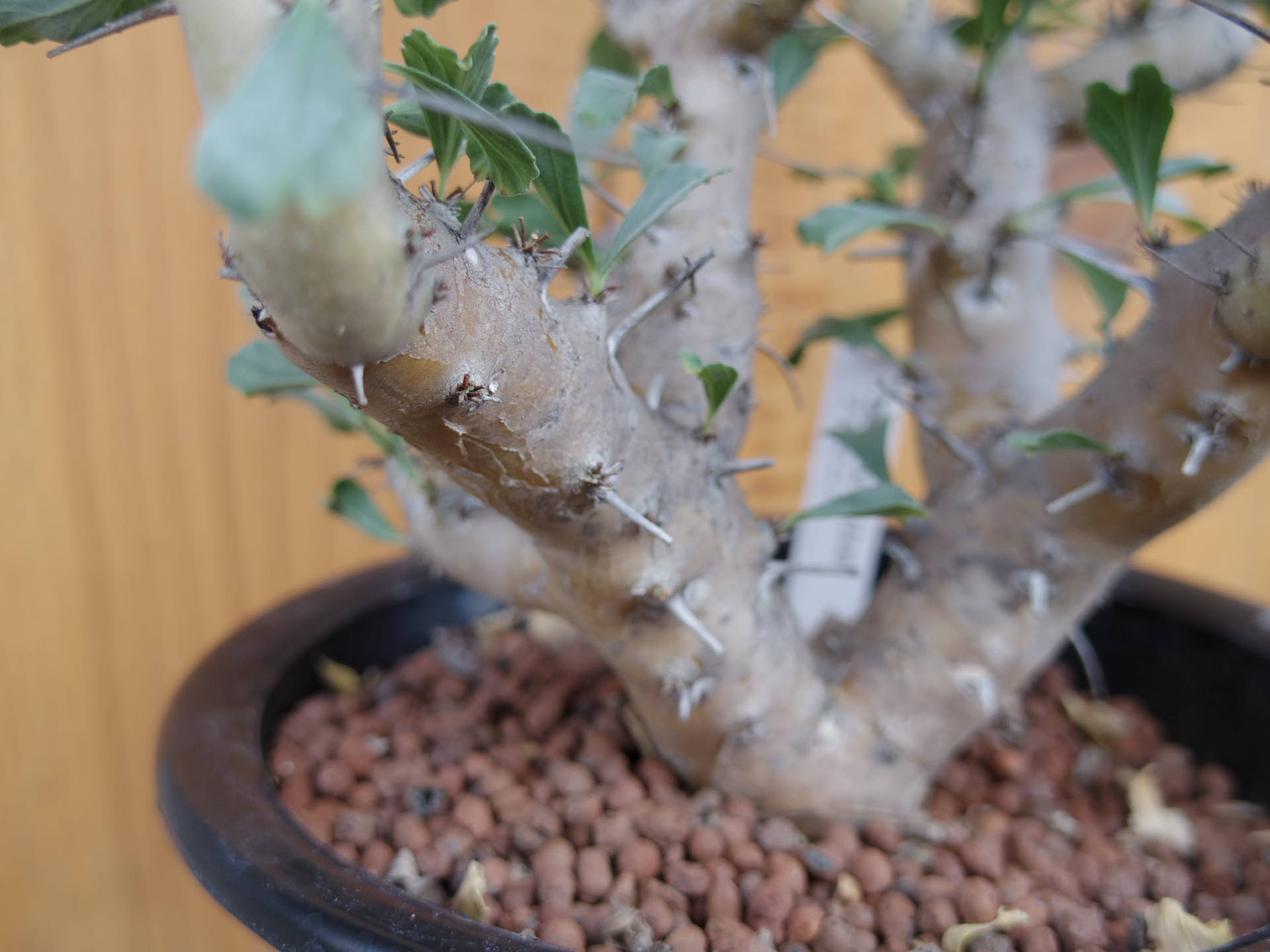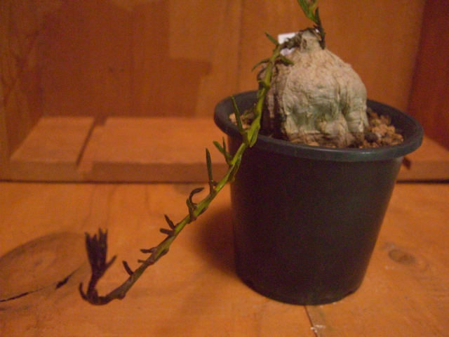 挿し木株です。この枯れ枝のような本体からひょろっと出てる葉っぱがいいですね。