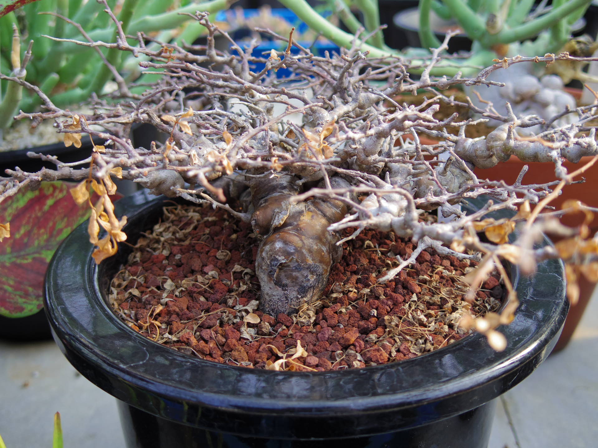 夏型なので、この時期は可能な限り日光に当てて、水は細根が枯れない程度にやります。