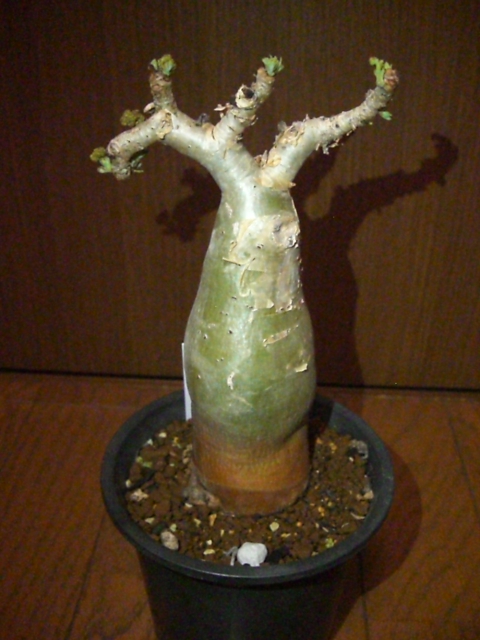 おなじみキョウチクトウ科のパキポです。しかし、あまり市場には出回らないようで、私も今回始めてお目にかかり購入しました。大事にせねば。実生株でイモ径5cmです。夏型。