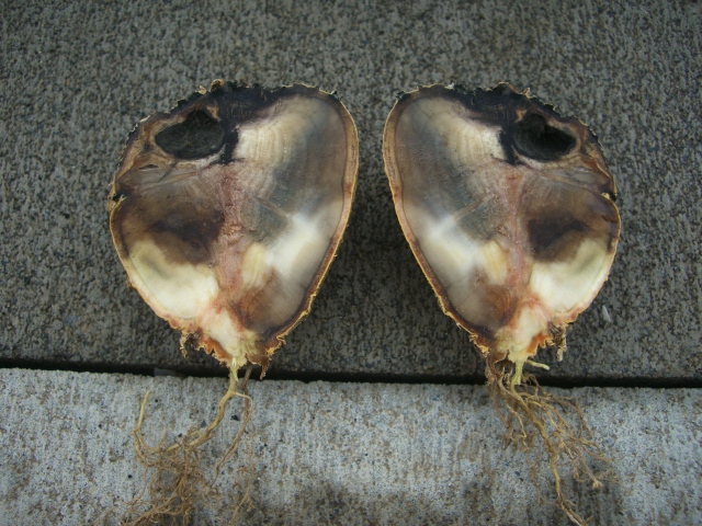 どうせ、復活はしないだろうと、カッターで切断してみました。